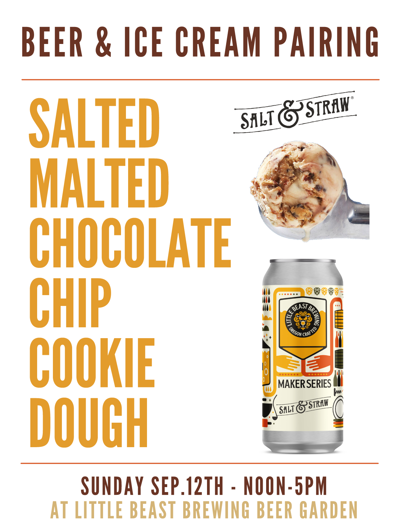 Salt & Straw系列将于9月12日(周日)发布限量版草稿和16盎司4包。在周日的发布派对上,从中午12点到下午5点,Little Beast将在他们位于东南区的全年啤酒花园提供啤酒和一种特别搭配的咸麦芽巧克力曲奇冰淇淋。