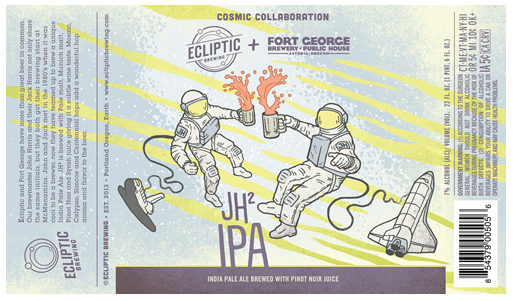 黄道的约翰·哈里斯和乔治堡的杰克·哈里斯本质上有着相同的名字,他们都是从McMenamins开始酿造的。他们合作创建了JH²IPA,这是由淡麦芽,慕尼黑麦芽,黑皮诺和西拉果汁酿造,使其具有微妙的葡萄酒味道,加上啤酒花:马赛克,Calypso, Simcoe,和Centennial啤酒花,为7%的啤酒添加了美妙的香气和风味。今天,他们在波特兰巡演,庆祝JH²IPA: