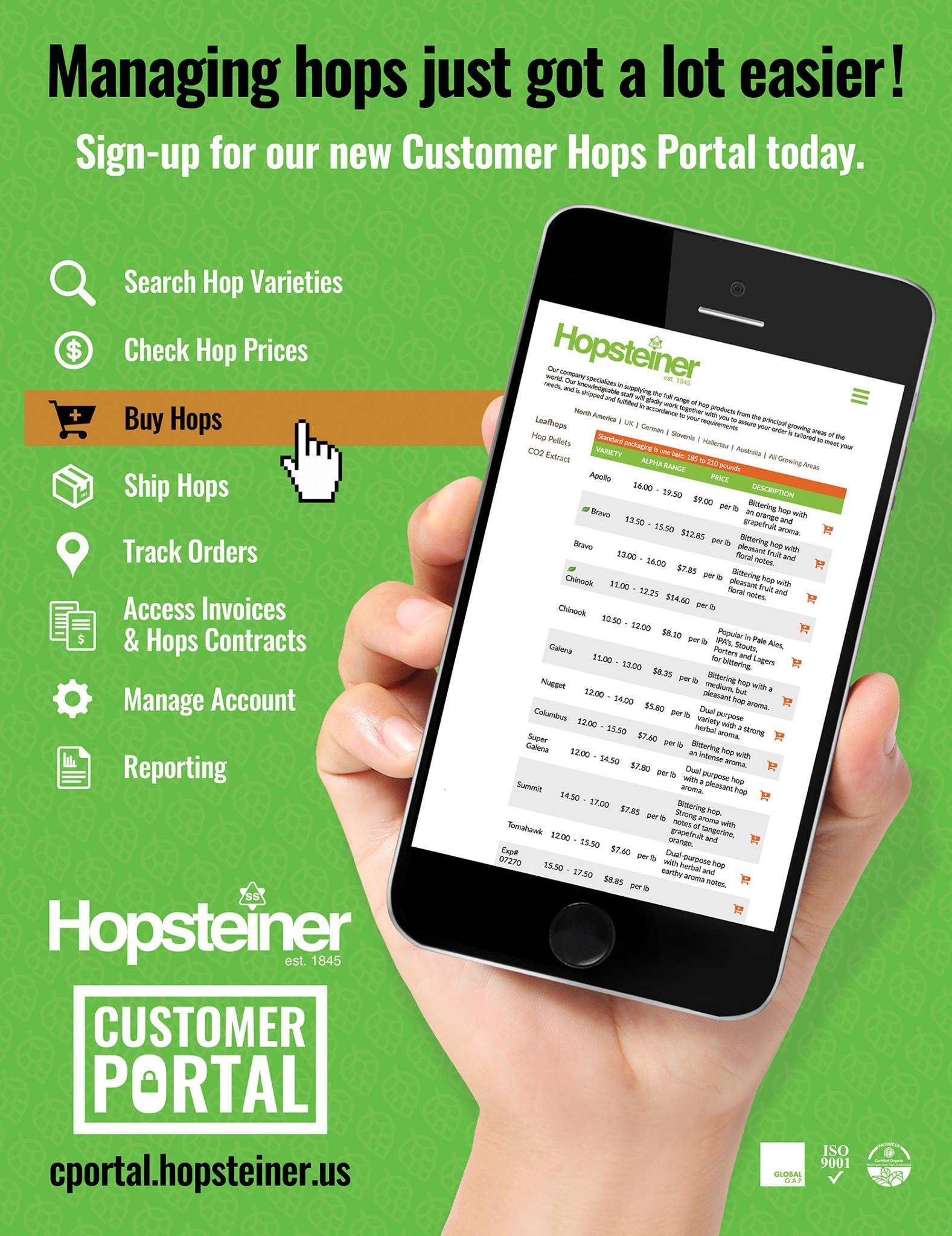 Hopsteiner销售和技术支持副总裁Mike Sutton表示:“在未来几个月,Hopsteiner将为我们的客户推出查看产品和订单分析信息的功能。”“该门户将得到加强,以便那些与我们一起存储跳转的客户也可以使用该门户作为库存管理工具。这将为我们的许多客户简化啤酒花的购买和存储过程。”