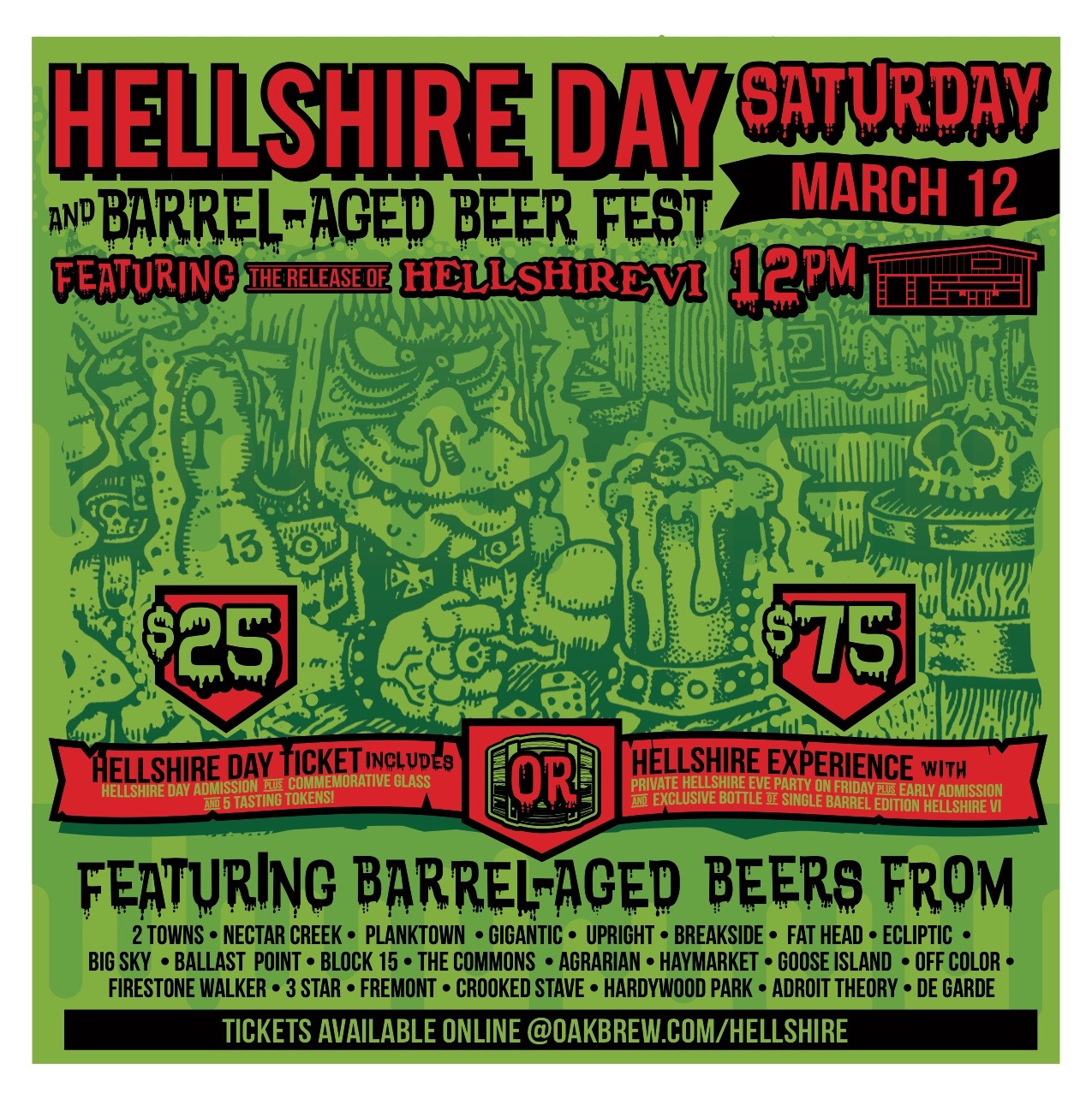 奥克斯郡Brewing will release Hellshire VI, the brewery’s sixth barrel-aged beer under the Hellshire label, with a barrel-aged beer festival that includes offerings from Oakshire’s barrel-aging cellar, as well as 50+ barrel-aged beers from breweries around the country. The first sales of 22 oz. wax-dipped Hellshire VI bottles start at the festival. Also: live music by Eugene bands and food from local food carts.