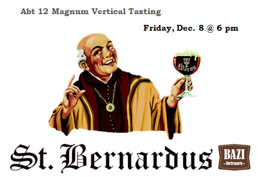 来自比利时西佛兰德斯的瓦图,圣Bernardus被公认为世界上最好的啤酒厂之一。它最受欢迎的啤酒是它的圣贝纳多斯约122017年12月8日,星期五,坝子Bierbrasserie下午6点到10点,将举办四种葡萄酒的特别垂直飞行。