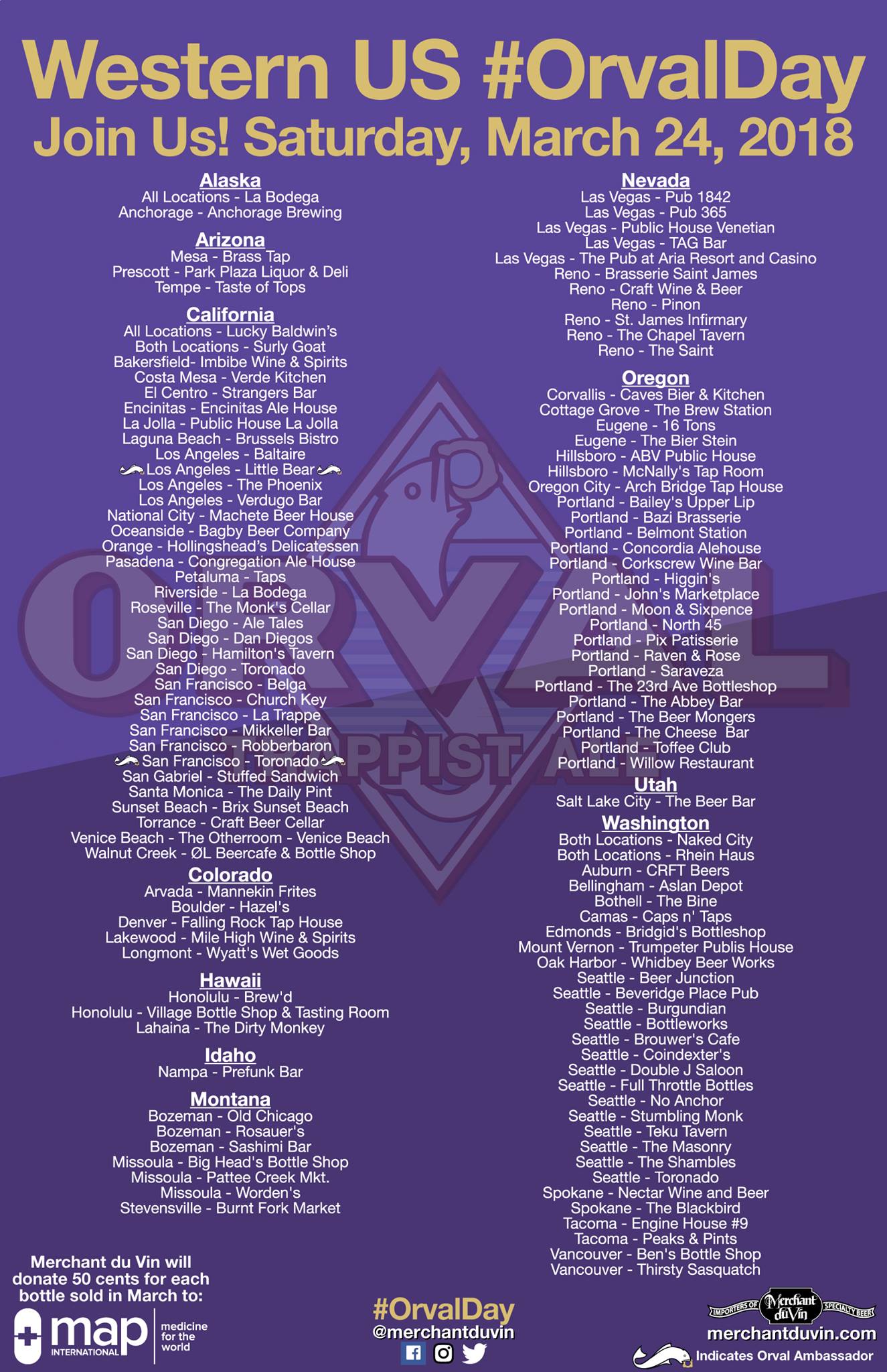 2018年,Merchant du Vin有400家酒吧参与Orval Day活动。以下是2018年奥瓦尔日所有参与啤酒吧的名单。