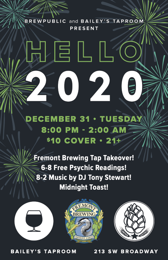 向2019年告别,欢迎2020年!第五年跑步BREWPUBLIC.是合作的Bailey的Taproom.因为它2019年新年前夜派对12月31日星期二!正如我们倒计时到新十年的时间,Bailey的Taproom策划了与西雅图的Tap列表弗里蒙特酿造在新的一年里带来一个晚上的工艺啤酒,音乐和记忆!