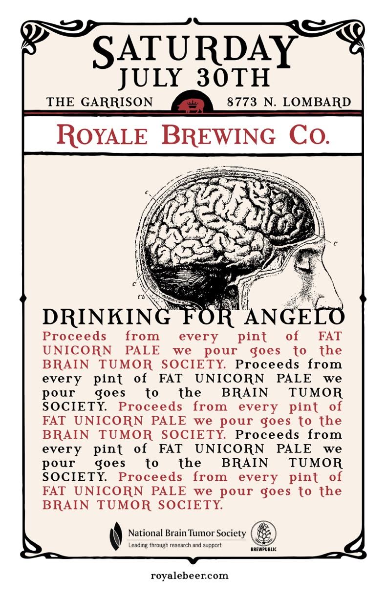 圣约翰斯的栗子北波特兰邻里最近见证了崛起的崛起皇家酿造是城市最新,最伟大的新啤酒厂之一。Angelo的朋友和Royale联合创始人迈克韦克勒和杰克休斯顿众所周知,许多人开始成功的移动装瓶公司绿色装瓶已经采取了一级(他们甚至与世界着名的Alan Sprint的狗酿造的头发合作)。星期六从中午到午夜,Royale的Taproom将从特殊的小桶中献出收益胖独角兽啤酒到国家脑肿瘤会代表Brewpublic的团队为今年的筹款努力。