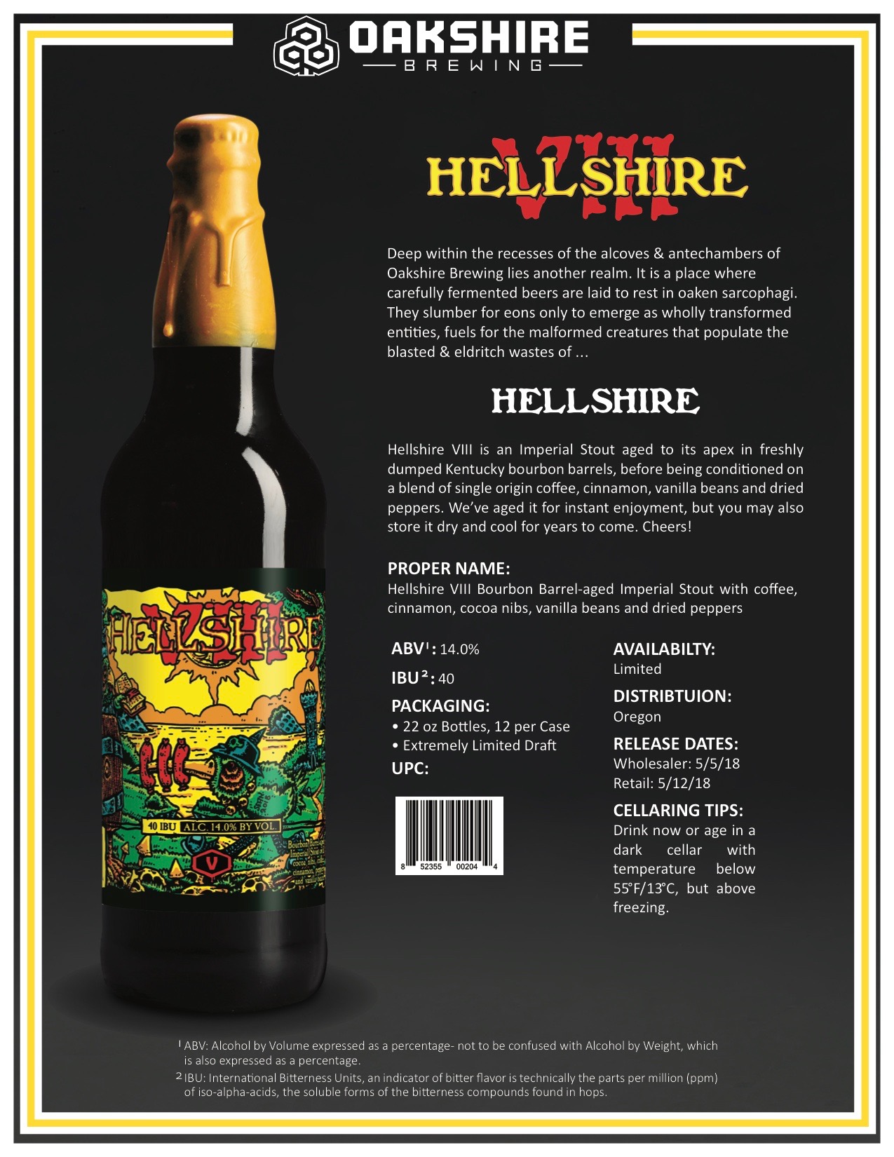 Oakshire创始人Jeff Althouse在一份声明中这样描述啤酒节:“庆祝啤酒制造工艺的巅峰。地狱郡日展示了来自各种独立酿造商的稀有和特殊的啤酒。在黑尔郡日,啤酒制造商和啤酒饮用者的社区聚会在桶装陈酿啤酒的黑社会中是一种罕见的体验。”