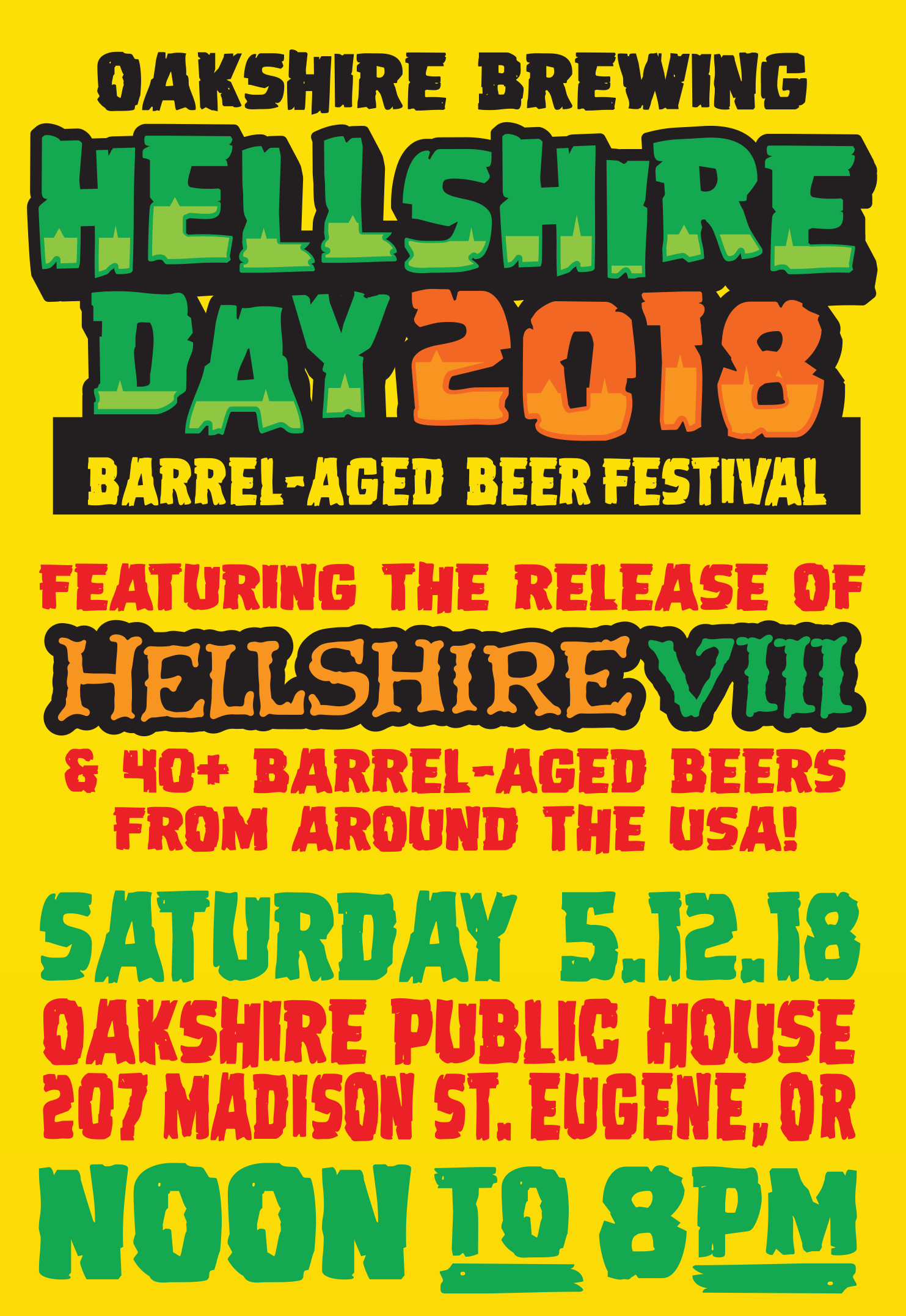 2018年赫尔郡日在俄勒冈州尤金的Oakshire酒店举行,届时将聚集超过35家啤酒厂,酿造特色桶装陈酿啤酒。电影节将于中午12点至晚上8点举行,预售门票现于每个$30.00(扣除费用后为$32.04)提前(在门口35美元),每位持票者可获得一个节日玻璃杯和5个啤酒代币。组织者表示,大多数啤酒每4盎司一代币。额外的啤酒代币将提供2.00美元每个。只有参加这个节日才可以每个$5.00(扣除费用后$6.17)可以点任何一种橡树郡的常规啤酒,但不能点节日的桶装啤酒。在门口,这些票每张10美元。