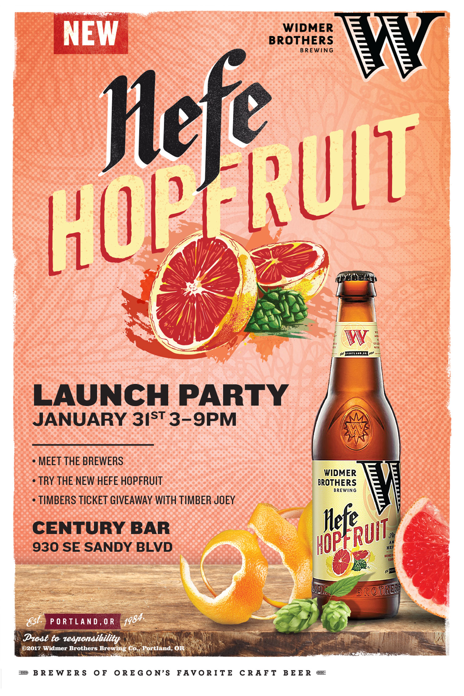 为了揭开序幕这个新版本,威德默兄弟托管的发起方Hefe Hopfruit2017年1月31日,星期二世纪酒吧下午3点到9点在波特兰的桑迪机场。由于Widmer Brothers Hefe是波特兰木材队的官方精酿啤酒,Timber Joey和前球员、现任木材队业务发展总监Jack Jewsbury将会出席。你可以在周二晚上寻找威德默兄弟的特辑。
