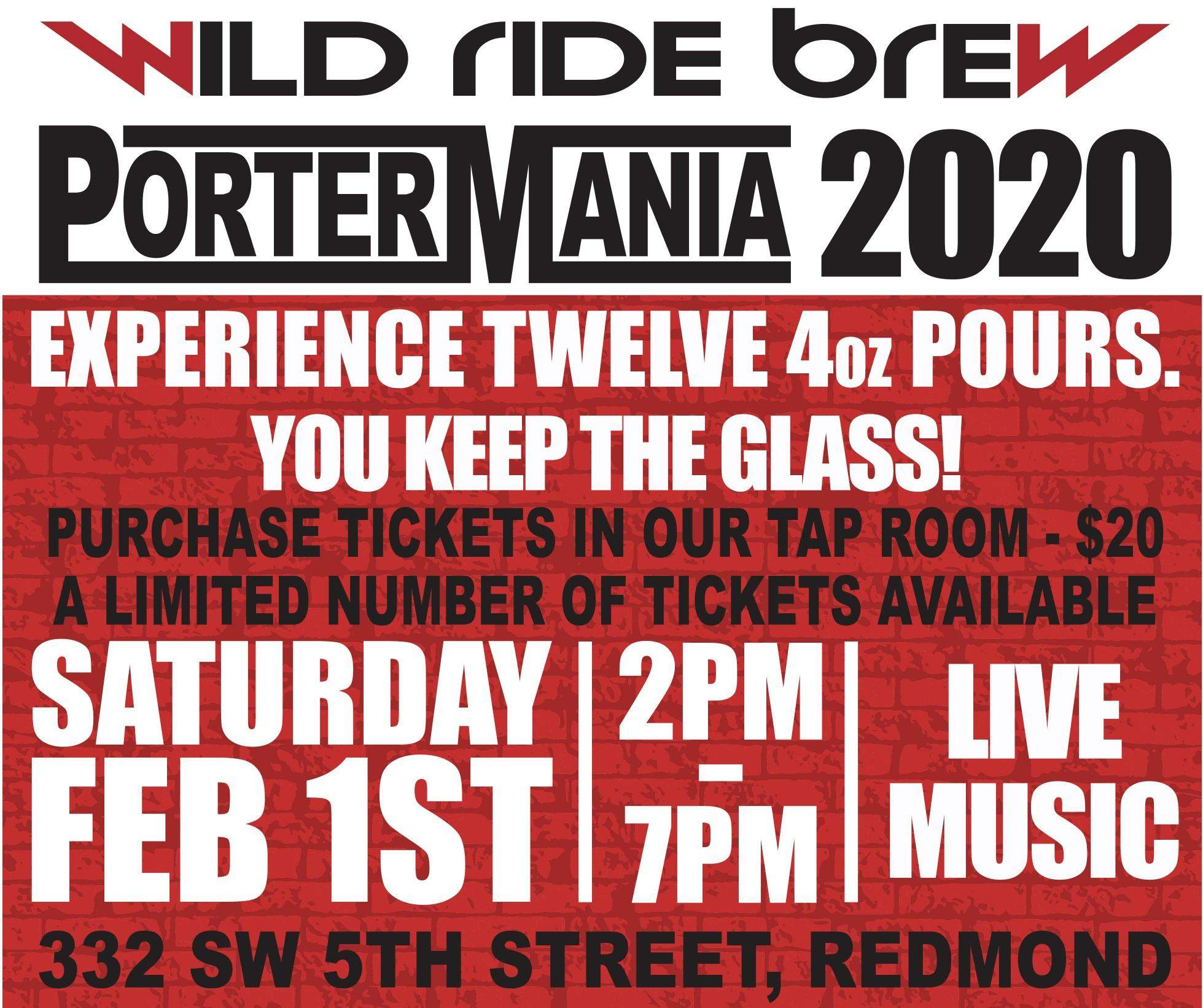 这些天的啤酒风格并非如此普遍将是2月1日在俄勒冈州雷德蒙德的特色啤酒狂野的骑酿造主持它2020 PorterMania.。是的,一个致力于搬运工的节日,其中17岁,将于周六从2:00-7:00pm举行。