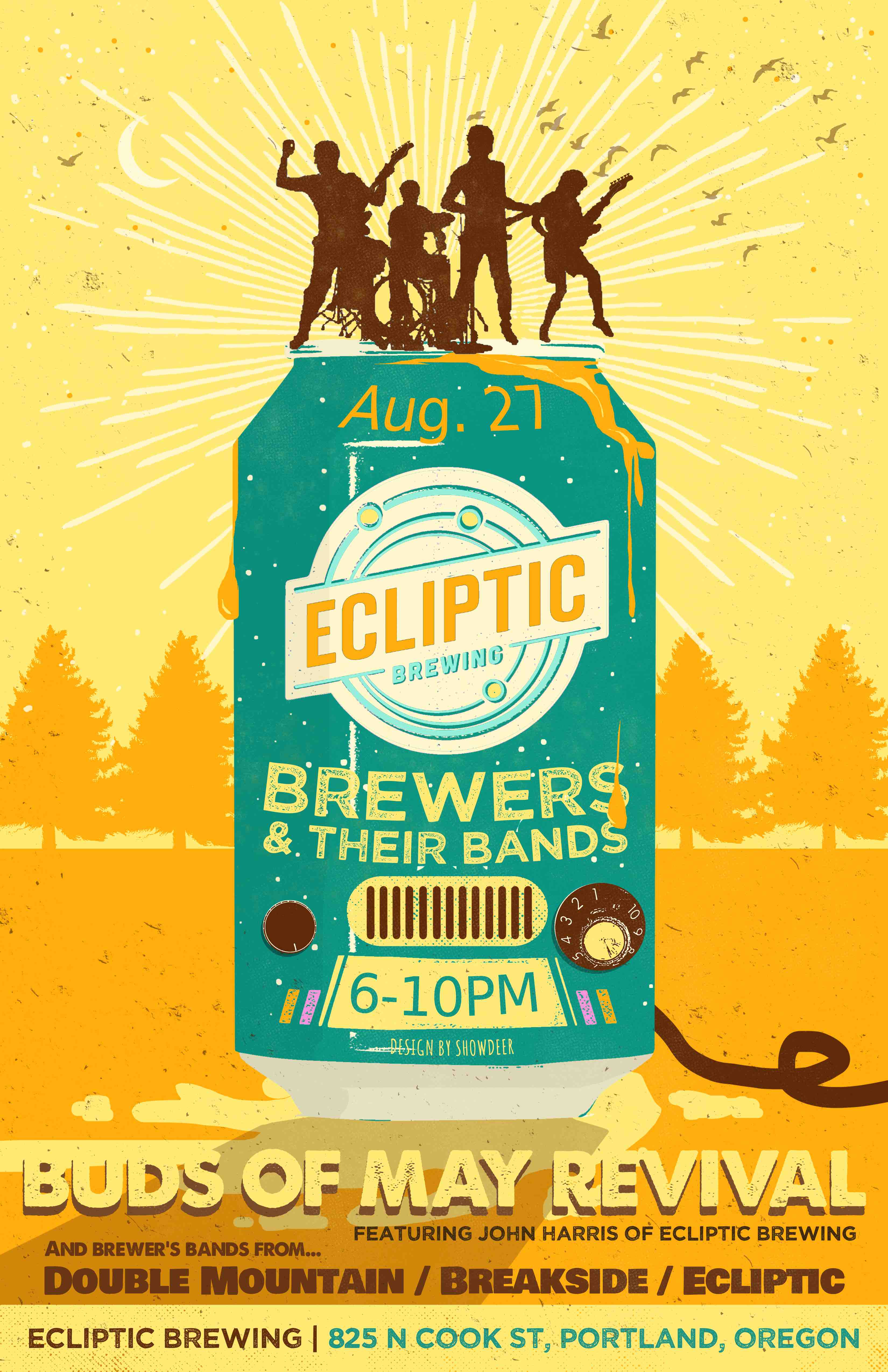 酿酒师及其乐队将于8月27日从6:00-10:00pm举行的Ecliptic Brewing的庭院,是家庭友好的。活动是免费的,食物和啤酒可供购买。