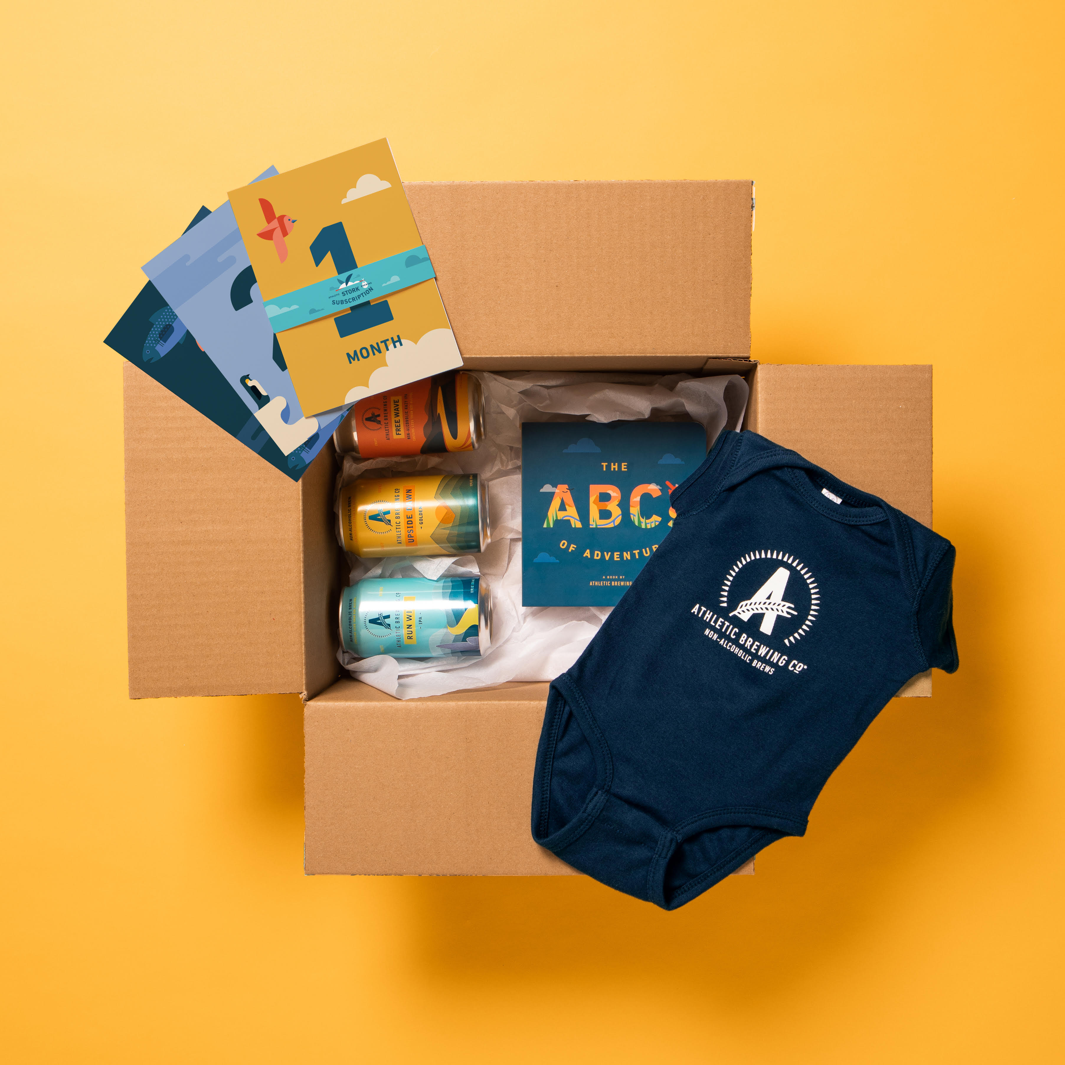 当那些深夜和清晨是必要的——他们将会——期待或新父母想要一个清醒的头脑。但他们可能还是想要一罐冰啤酒,随着即将推出的Stork订阅,他们将每月收到一罐六罐装啤酒,持续9个月。这个盒子将包含三种Athletic的旗舰啤酒:Run Wild IPA, Upside Dawn Golden Ale和Free Wave Hazy IPA。