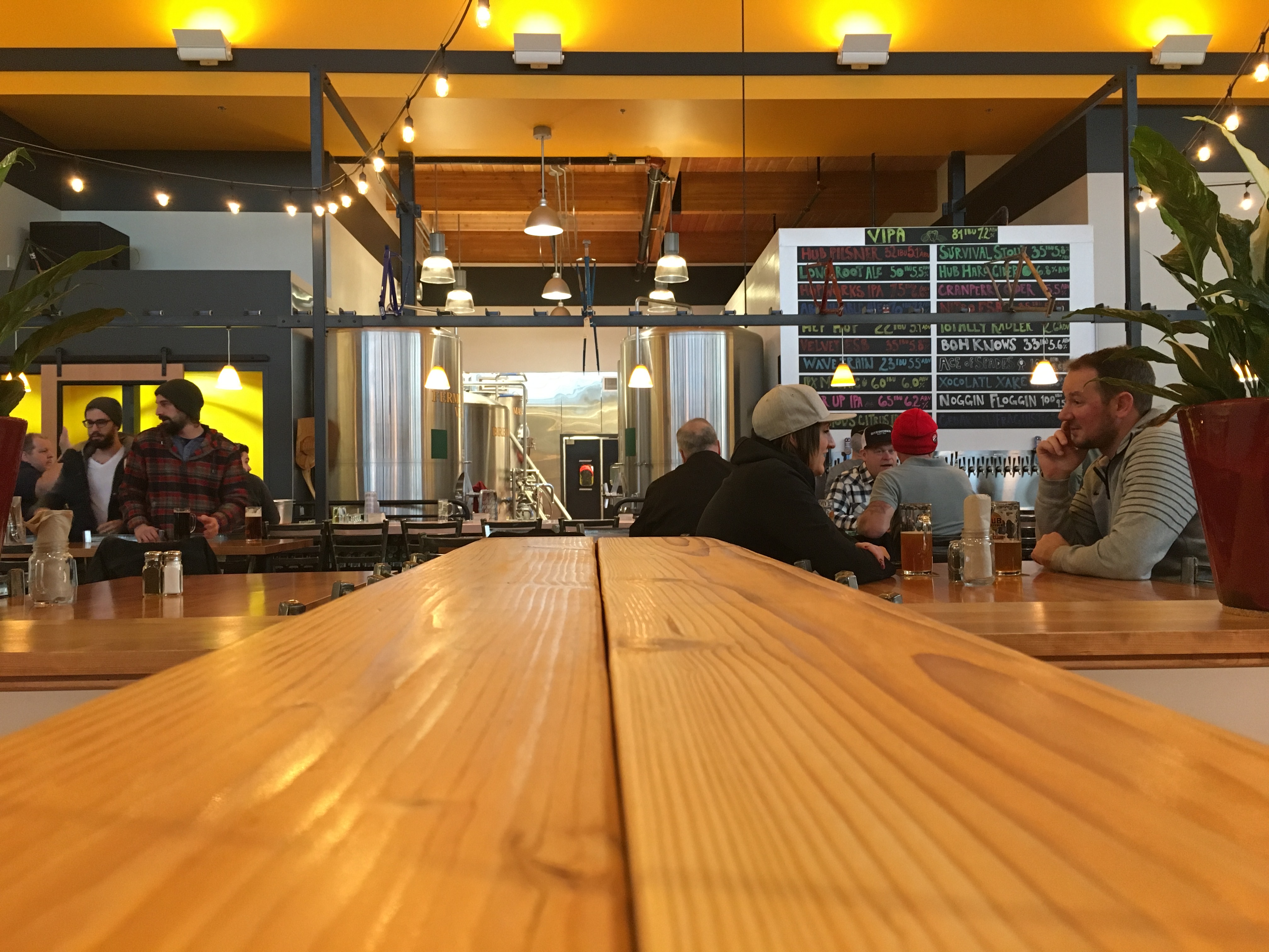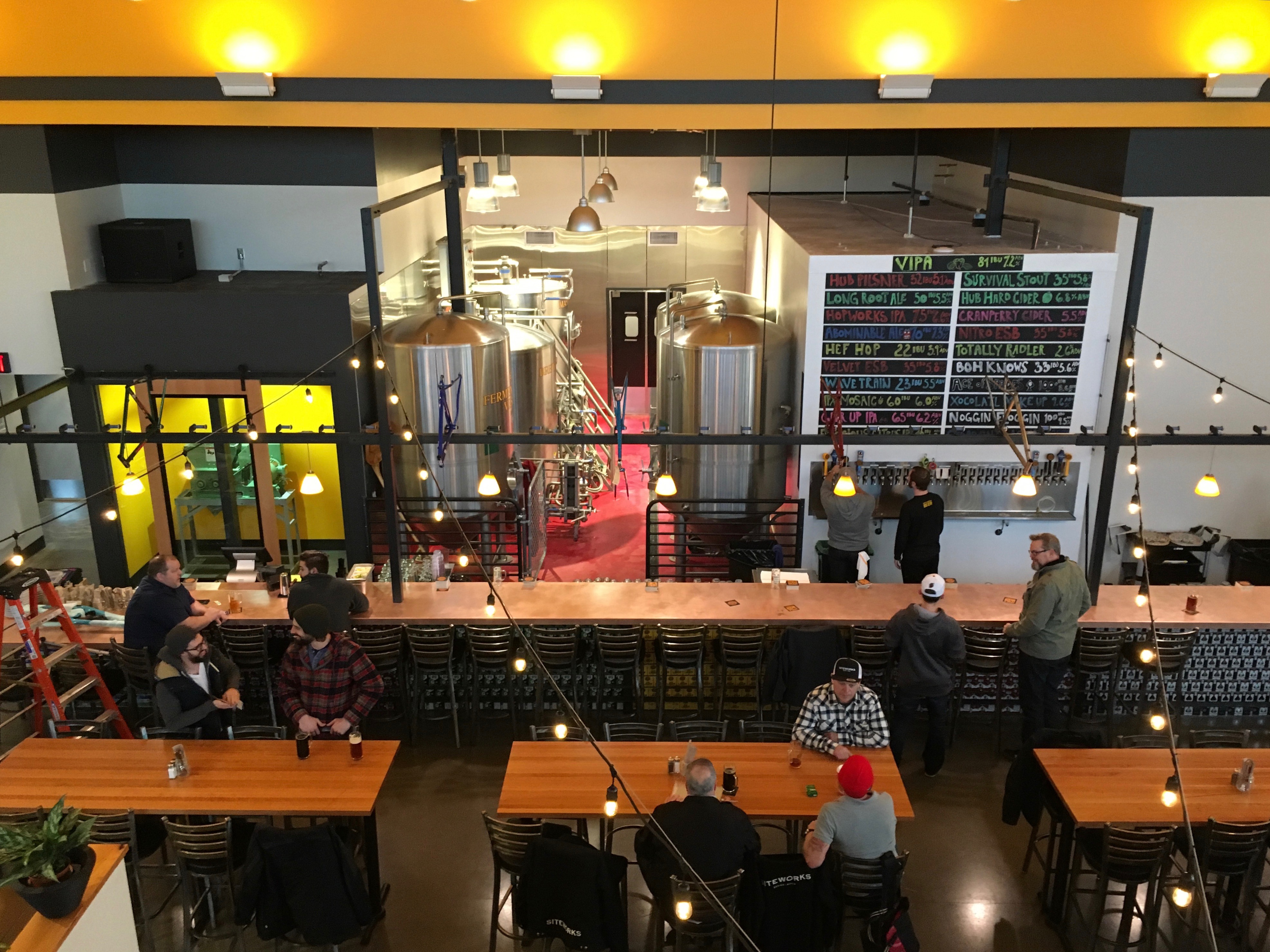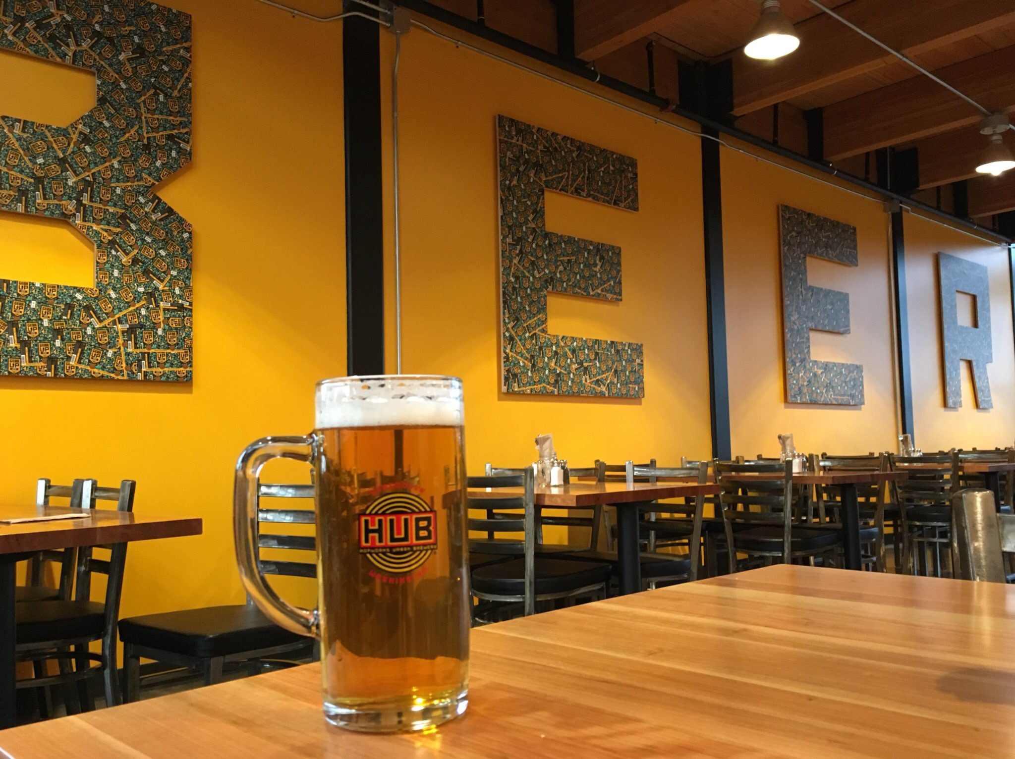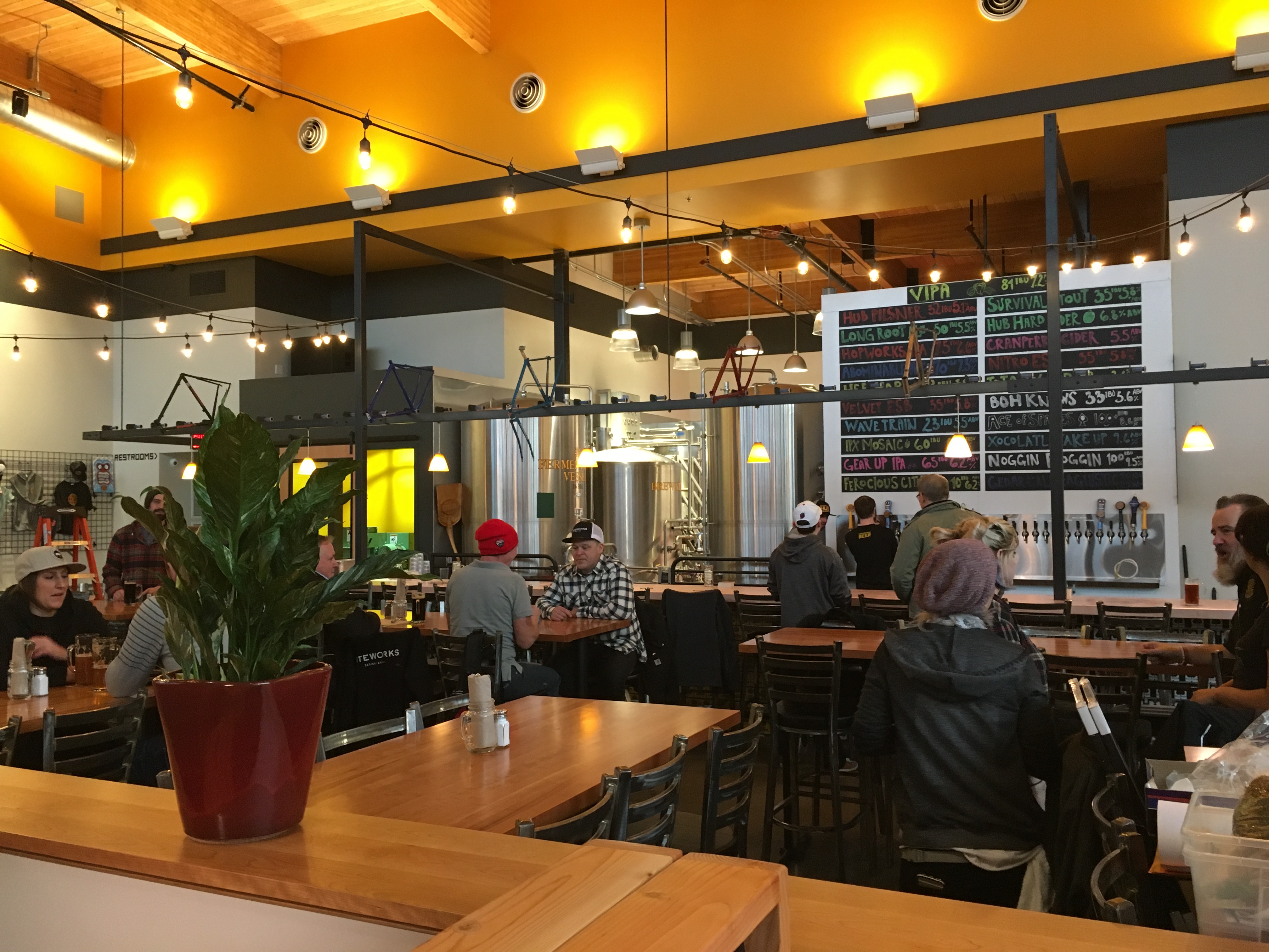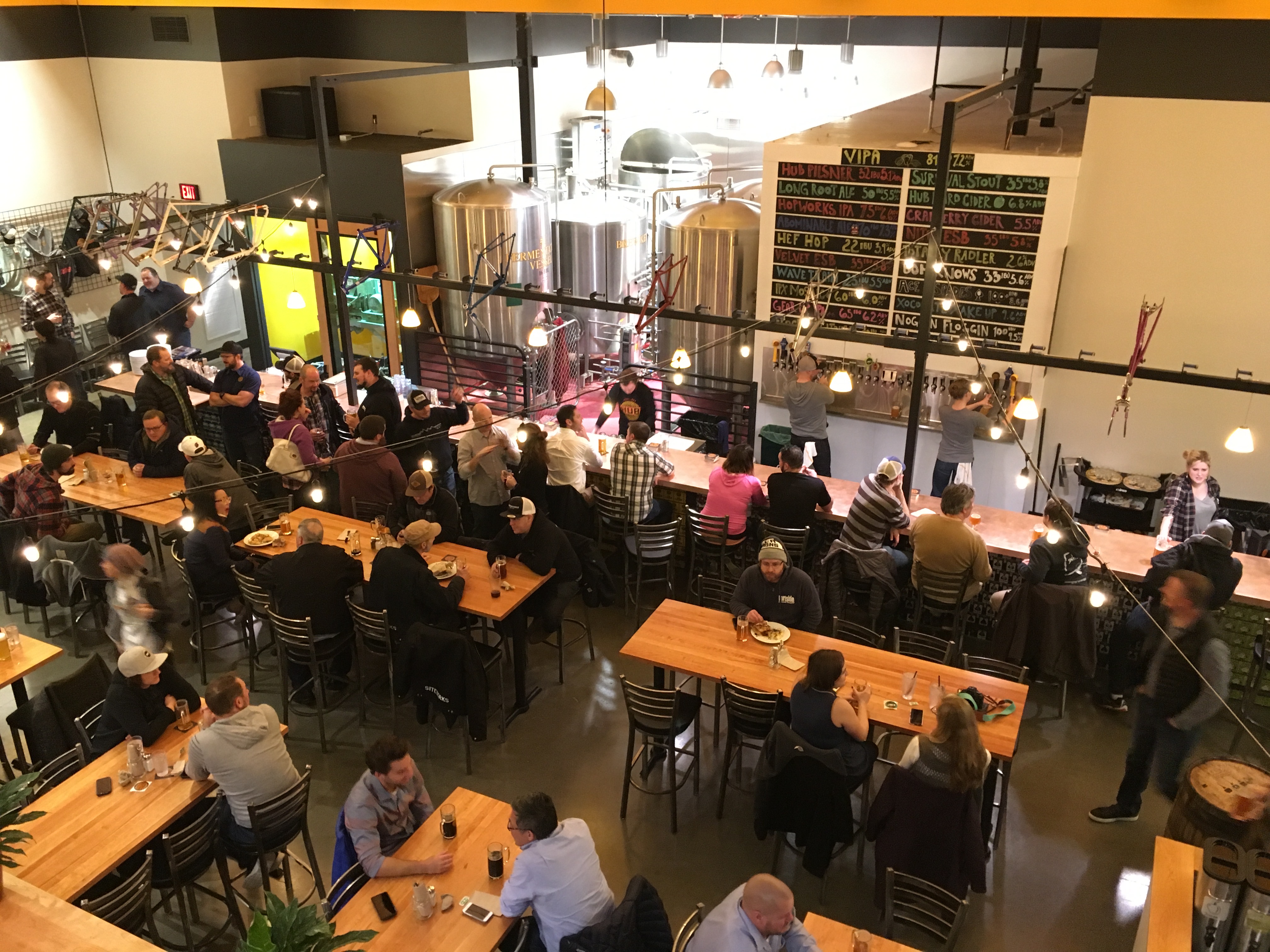 拥有6000平方英尺的啤酒厂和可容纳约300人的餐厅,空间提供了与HUB的其他两个位置非常相似的感觉和氛围。在通往啤酒厂的长酒吧上方是典型的自行车架,这是人们在HUB所期待的。人们可以从21个水龙头中选择,但目前缺少一个桶引擎。酒吧区后面是所有年龄段的座位,也位于夹层山的下面,它的楼上区域可以在晴朗的日子欣赏胡德山的景色,也有一个家庭友好区。