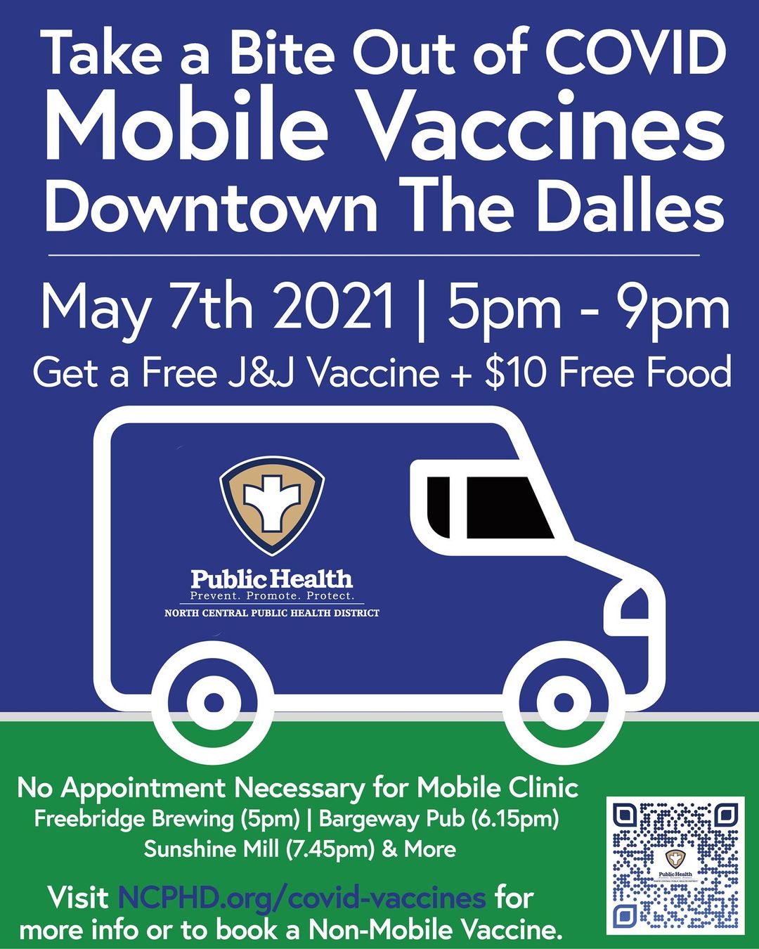 这北中央公共卫生区(NCPHD)将于5月7日星期五的晚上提供移动诊所,从5:00 - 9:00下午5:00其移动疫苗诊所将访问几家当地的餐厅/酒吧,并提供一件型约翰逊和约翰逊疫苗,所有参与者将获得10美元的令牌供食品。