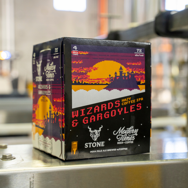 现代时代/石头巫师&gargoyles朦胧的咖啡ipa现在可以在16盎司四包罐,22盎司瓶和草案中提供全国范围内。