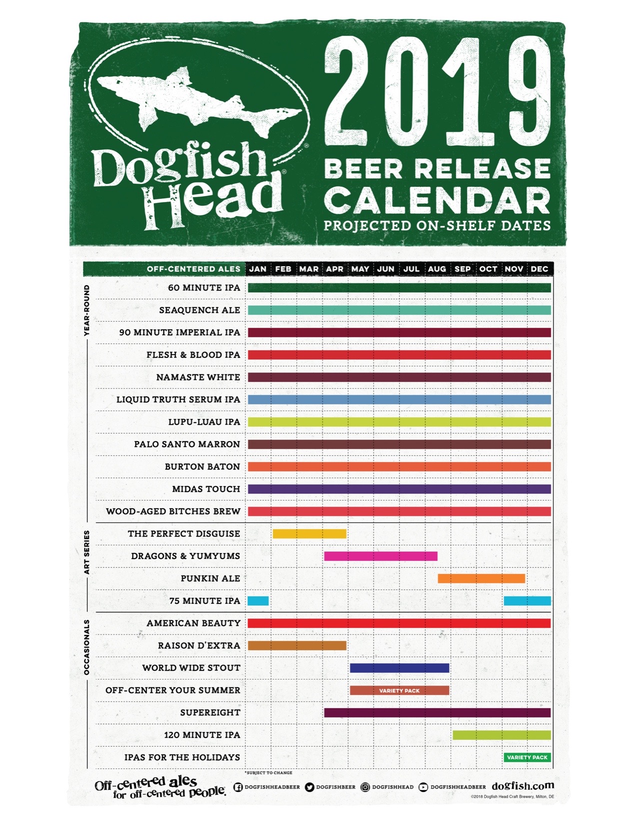 Dogfish Head Craft Brewery 2019年啤酒发布日历
