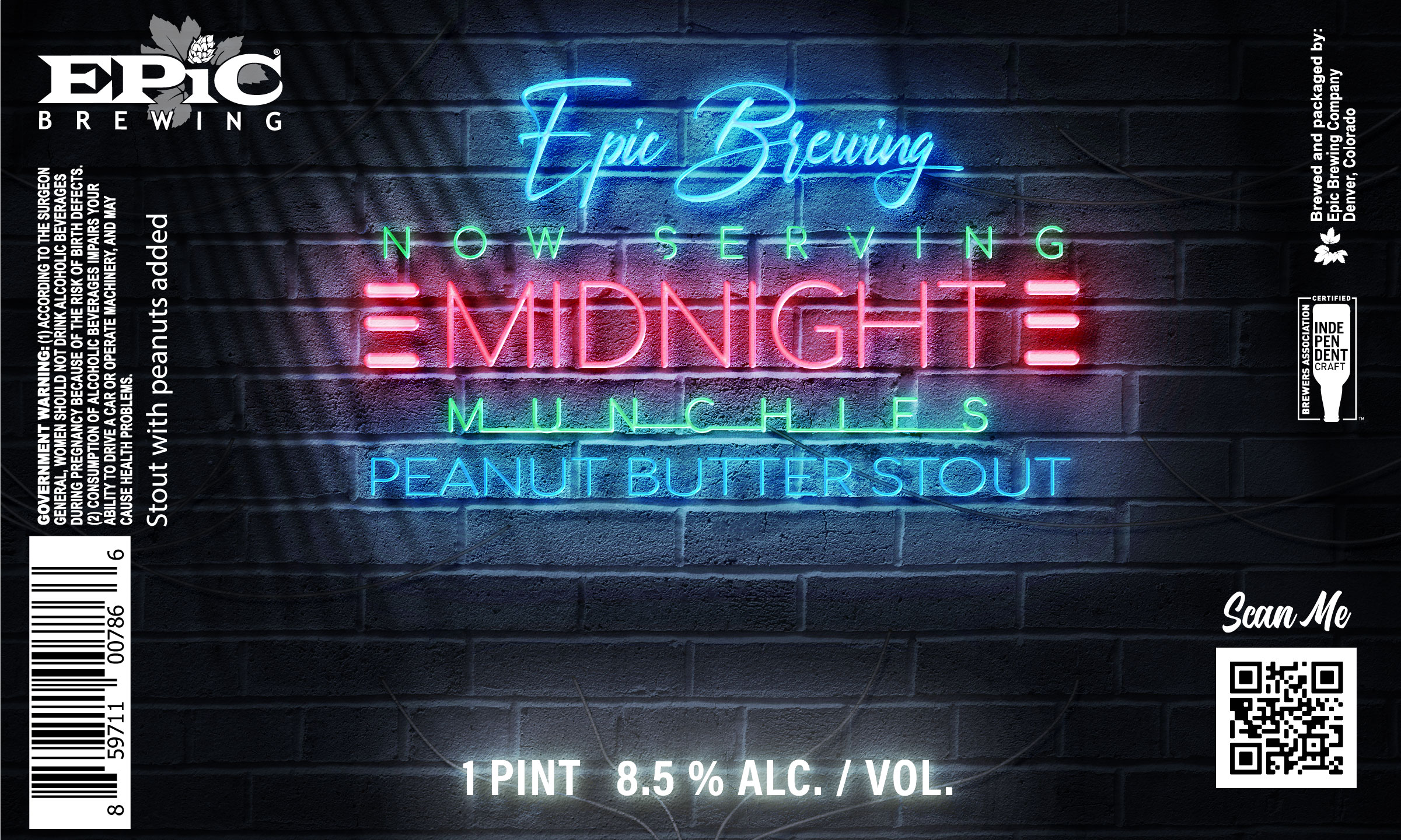 午夜Munchies Peanut酱粗壮将在犹他州和科罗拉多州的史诗酿造地点提供16盎司罐头,以及从1月5日开始的选择市场。在下次感受到零食的冲动下,而不是峡谷,而不是峡谷在薯片中,裂开午夜的寒冷罐头。查看标签上的新扫描QR码。今年旋转16盎司罐的每一个均配有独特的代码。