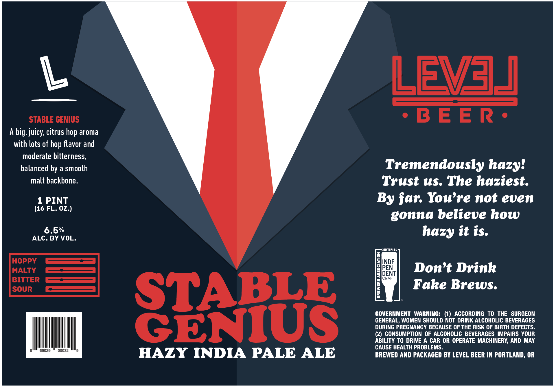 在周日的发布会上,Level Beer还将出售非常有限的Stable Genius无尾礼服t恤。也会有有趣的照相亭与适当的稳定天才道具。穿上一件Stable Genius t恤,或者拿着一个小罐子,贴上Level啤酒标签,拍张照片脸谱网或Instagram4月3日(星期二)之前,四盒16盎司的真人大小的罐装啤酒可享受折扣稳定天才朦胧的IPA.