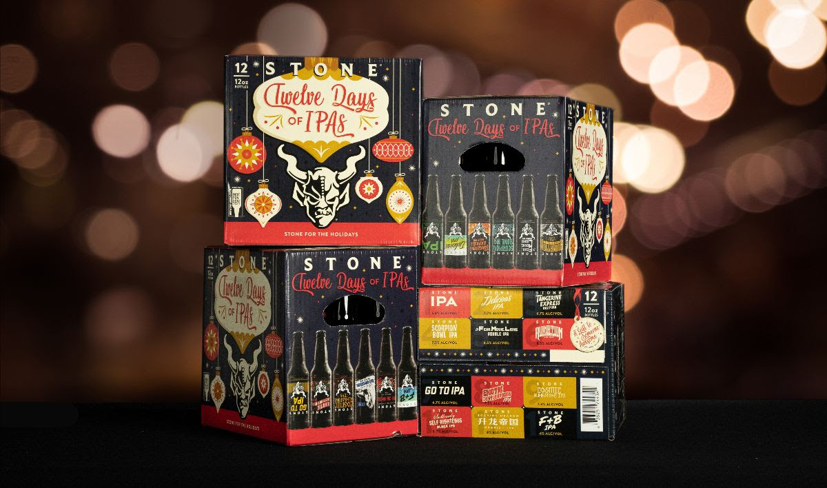 埃斯孔迪多,(2020年11月16日)-石头酝酿介绍了首次石12天IPAs混合包.节日包装里有12种不同的IPAs,包括新发行的,全年的主要产品,以及斯通传奇过去的粉丝最爱。你没看错,这可不是一般的混搭。这盒节日饮料可以装12瓶。十二个不同的啤酒。