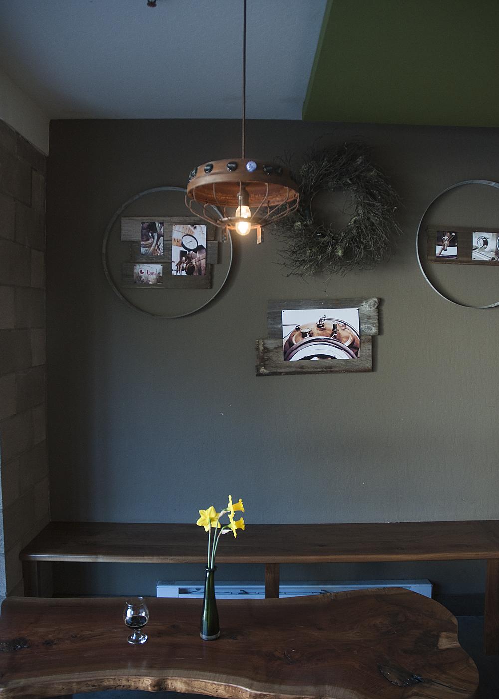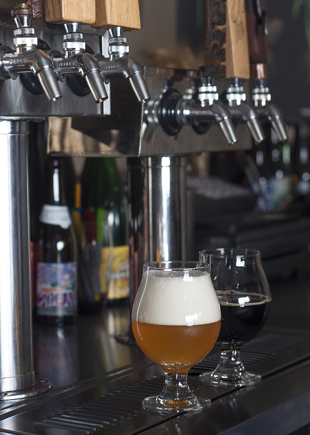 这间酒吧间很舒适,有足够的空间坐下来享受一杯啤酒,无论你是坐在漂亮的木质咖啡桌旁,还是挤在一个倒置的酒桶旁,还是站在石头顶的吧台前,与酒吧老板谈论六种桶装啤酒中的一种。啤酒极客们会被装饰在酒吧后面和墙上的空啤酒瓶(从Drie Fonteinen到Heady Topper)或一种黑麦植物的大型解剖海报所吸引。