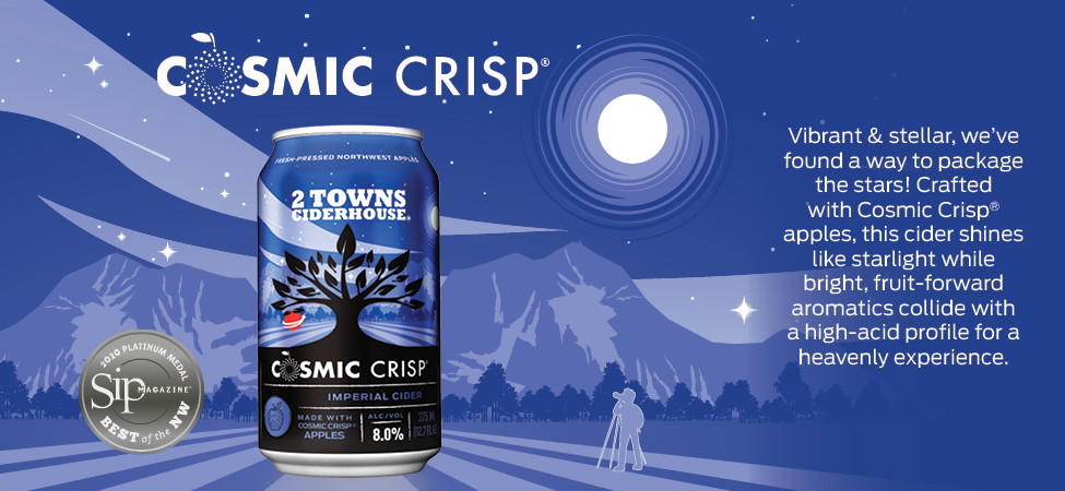 “We are proud to have been selected to partner with the COSMIC CRISP® team and launch this apple out into the world,” said Nels Jewell-Larsen, 2 Towns’ Director of Business Development, “This is a very special apple and it has been a pleasure to work with a group that is as passionate about apples as we are.”
