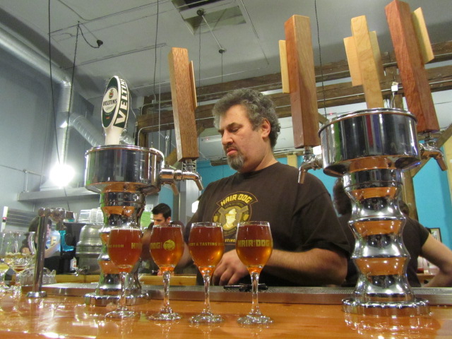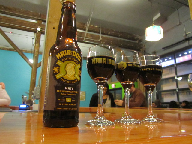 周六全市范围的选择让人望而却步,我们花了一天的早些时候做家务,然后回到德舒特,吃了一些酸樱桃搬运工。我们很高兴地品尝了这款带有浓郁布雷特味道的啤酒,它有着暗棕黑色的无头体和大量的樱桃味。不久之后,我们拜访了我们的朋友杰森·华莱士波特兰啤酒和音乐博客一边喝啤酒一边看大学橄榄球比赛。在听了一声“Walking Man Anniversary Oak IPA”和Jason从他的家乡德克萨斯州带来的2009 Real Ales Sisyphus Barleywine之后,我们来到了Hair of the Dog的品酒室,品尝了他们在17周年纪念日周末推出的产品。