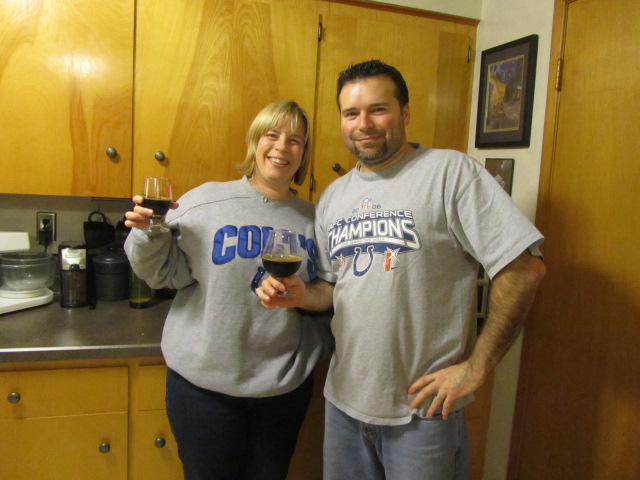 周日,我们和朋友里奇·马文和艾米·马文进行了一场足球友谊赛,还喝了几瓶精选的啤酒。马文队是印地安那州本土人,也是印地安那波利斯小马队的终身球迷,他们一直在与我们的新英格兰爱国者队进行一场期待已久的竞争。经过紧张的结束后,我们很高兴地离开,我们的帕特队最终领先,这一次仅仅是一个射门进球。当时最受欢迎的啤酒包括里奇自制的捷克皮尔士和卡斯卡迪黑啤酒,以及2007年德舒特深渊、迷失修道院毒蛇黑啤、Orléans Antoine Pépin Dit Lachance Weizenbock和白桦比利时风格淡啤。