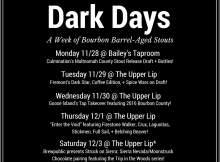 进入11月的最后一周,贝利酒吧(Bailey 's Taproom)和上唇酒吧(the Upper Lip)推出了“黑暗日”(Dark Days),即5天的桶装陈酿啤酒。事件将会bet188在线登录发生